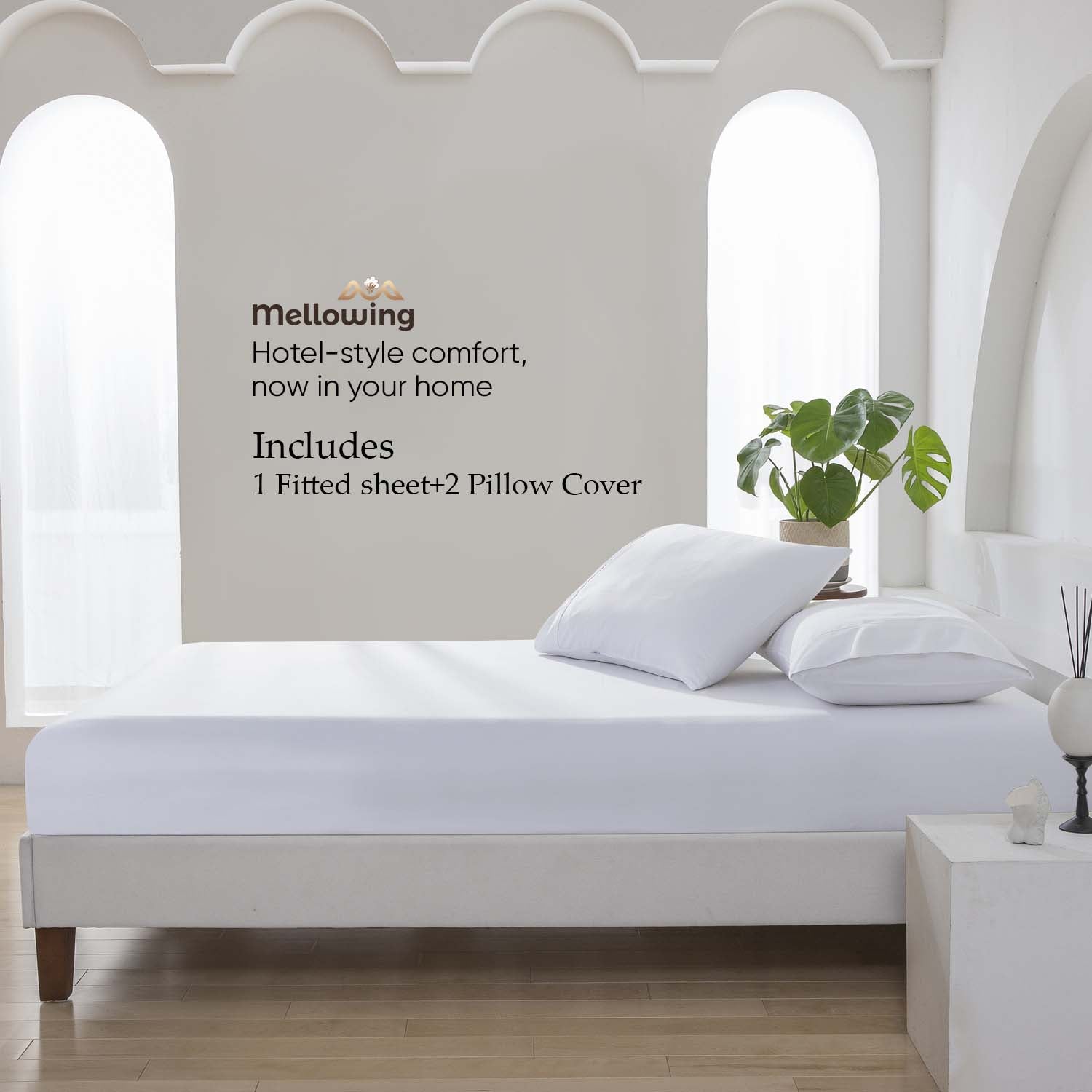 Includes: 1 Fitted bedsheet and 2 pillow covers.